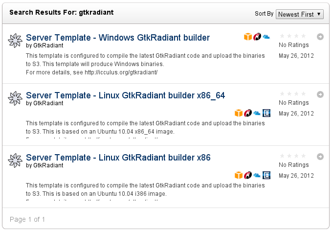 I got around to publish those templates so everyone can use them now. You will need an AWS account, and a RightScale account (basic RS account is free). On RightScale's Server Template market place, enter GtkRadiant in the search box, and you will come up with the following: